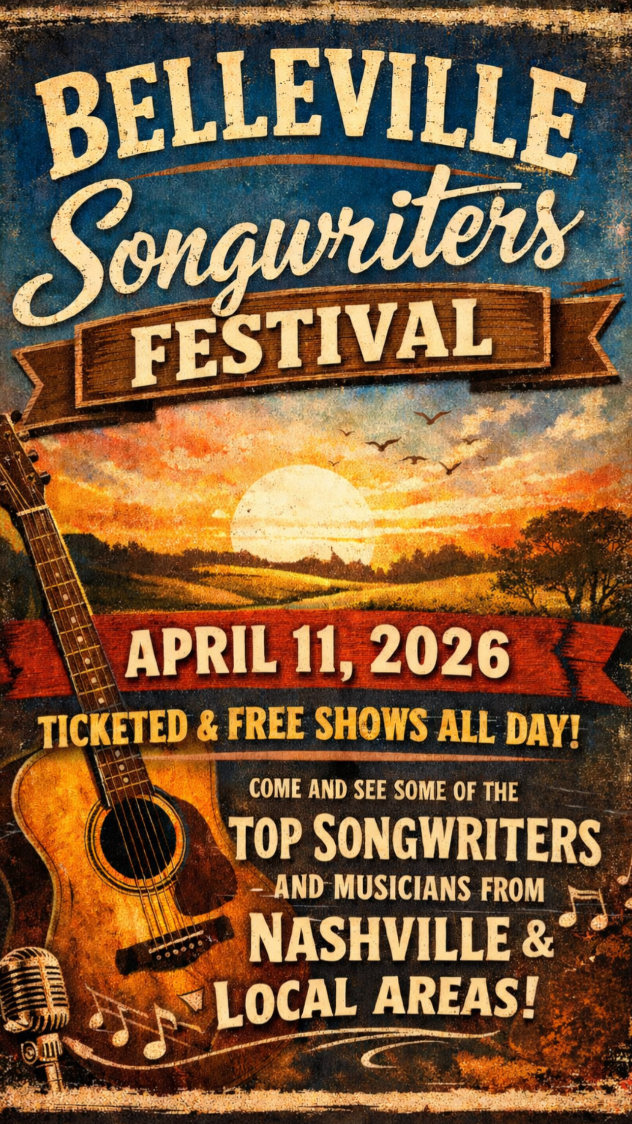 8 Nashville Songwriters with three events, one ticket! 12-15 additional locations for an all day music event.