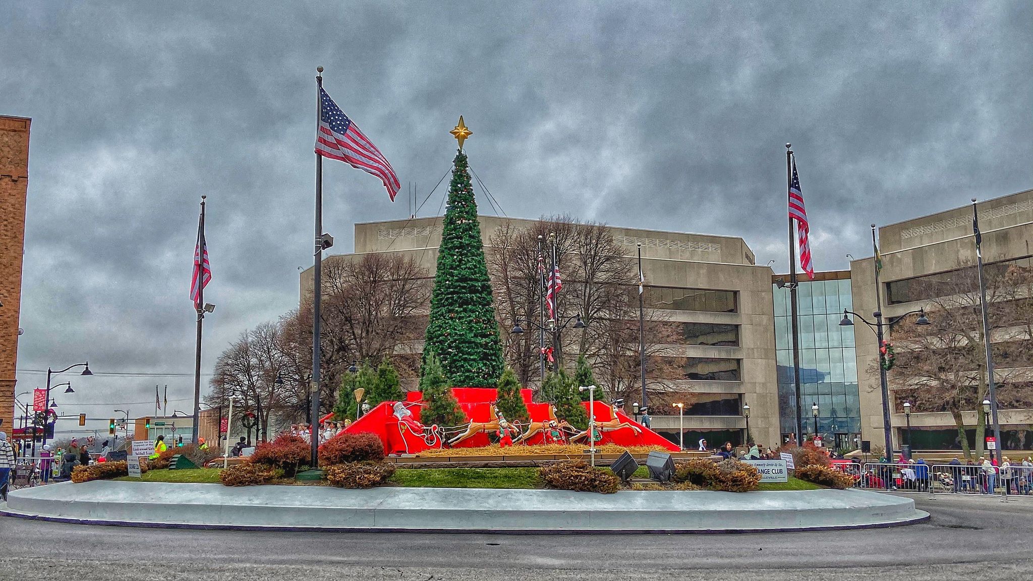 Enjoy the lighting of the Veteran’s Memorial Fountain in Belleville’s Public Square as Belleville’s Mayor Jenny Gain Meyer, residents and visitors carol for the holidays.