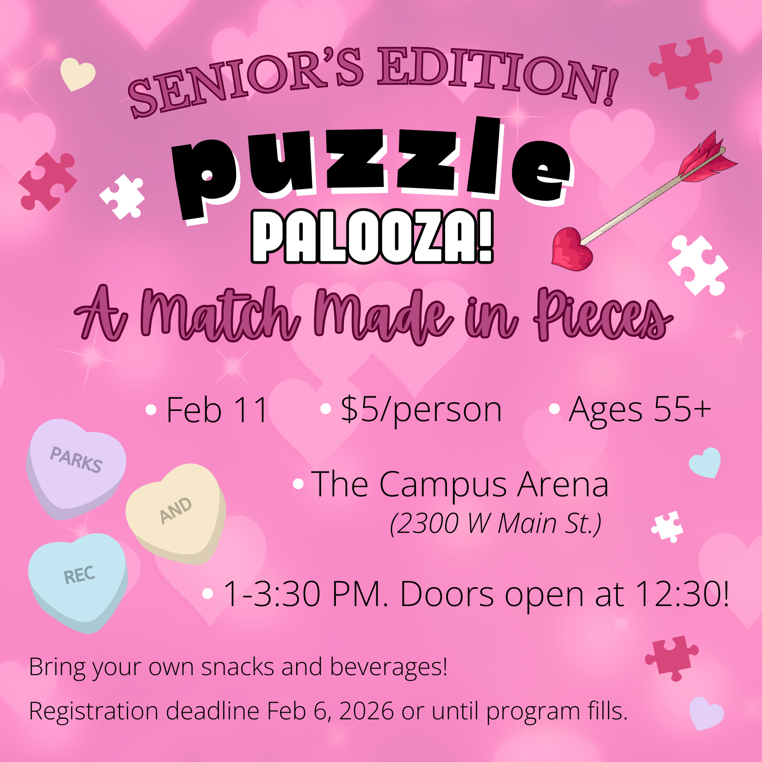 A special edition of Puzzle Palooza just for our Seniors! Join a Match Made in Pieces in teams of 2-4 people to compete to finish a 300 piece puzzle the fastest for a prize! Every group will be given the same puzzle to complete. BYO SNACKS and DRINKS! Open to players ages 55+.