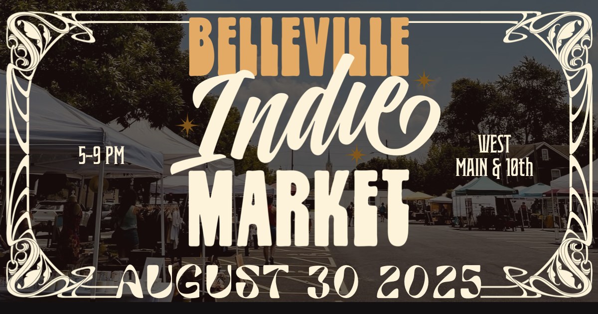 10th and West Main City Parking Lot and Greenspace Belleville, United StatesJoin us for the second part of the summer Belleville Indie Market! Featuring over 50 local creatives for one night only in beautiful downtown Belleville Illinois. Don't forget, the party is on the West Side this year.