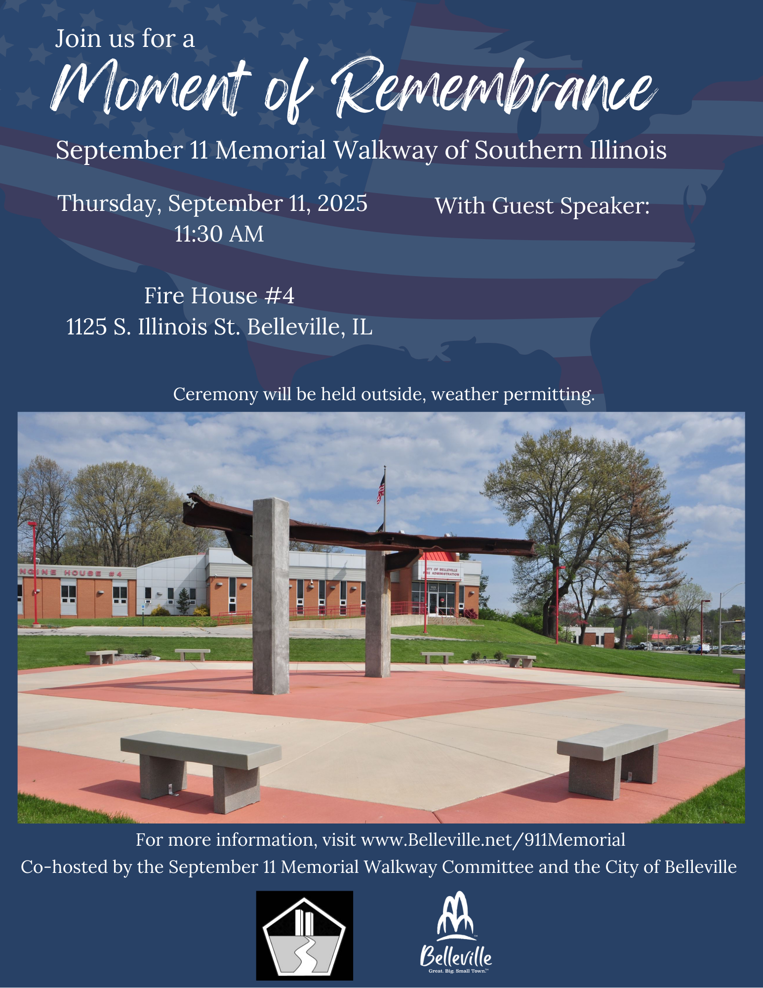 Engine House #4 1125 South Illinois Street, Belleville, IL, United StatesPlease join us for this annual ceremony at the site of the September 11 Memorial Walkway of Southern Illinois in Belleville. Co-hosted by the City of Belleville and the September 11 Memorial Walkway of Southern Illinois Committee, this ceremony honors […]