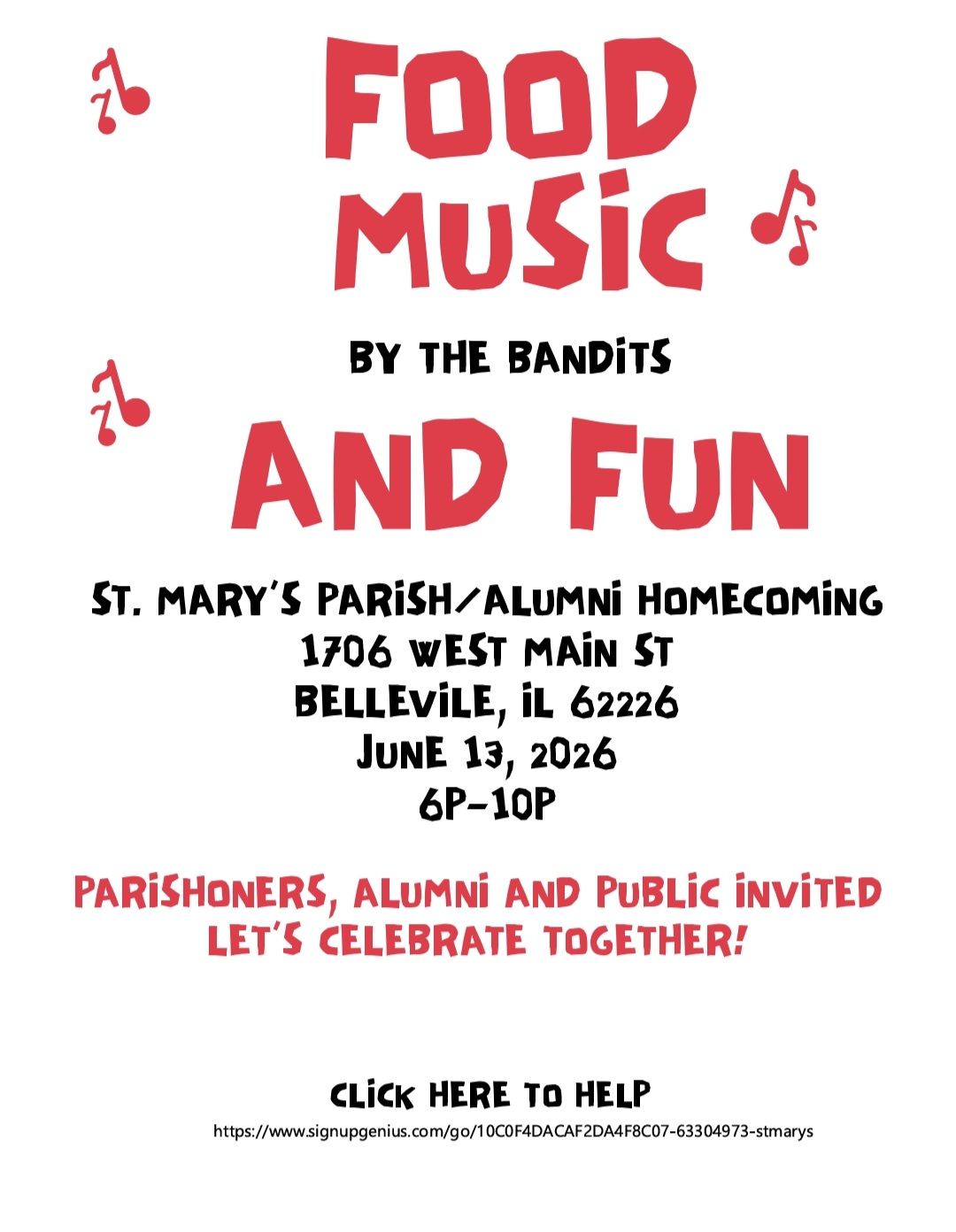 St. Mary Parish 1706 W Main Street, Belleville, IL, United StatesFormer Alumni, parishioners and community come home and get together for an evening of fun with previous classmates young and old